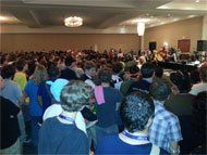 We returned to the convention center for the evening entertainment which included the costume contest and the D&D Sluggers concert. We met up with Joey DeSena and we also spent a lot of time talking with Greg Tito and Schuyler Dievendorf of The Escapist. Unfortunately, my back had been bothering me since Buffett and I loaded the truck several days before, so I was having a hard time standing in the concert hall. I elected to relax in the hotel lounge with Joey, David & Buffett. Gary & Scott stayed for the concert and had a wonderful time.